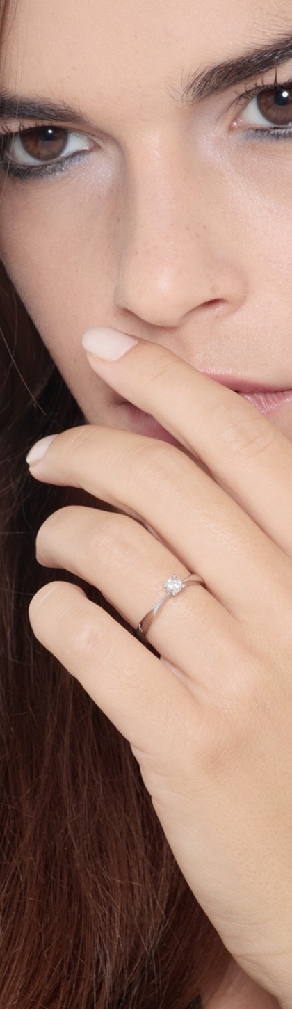 Bague Solitaire 4 Griffes en Or Blanc 18k avec Diamant 0,20 ct