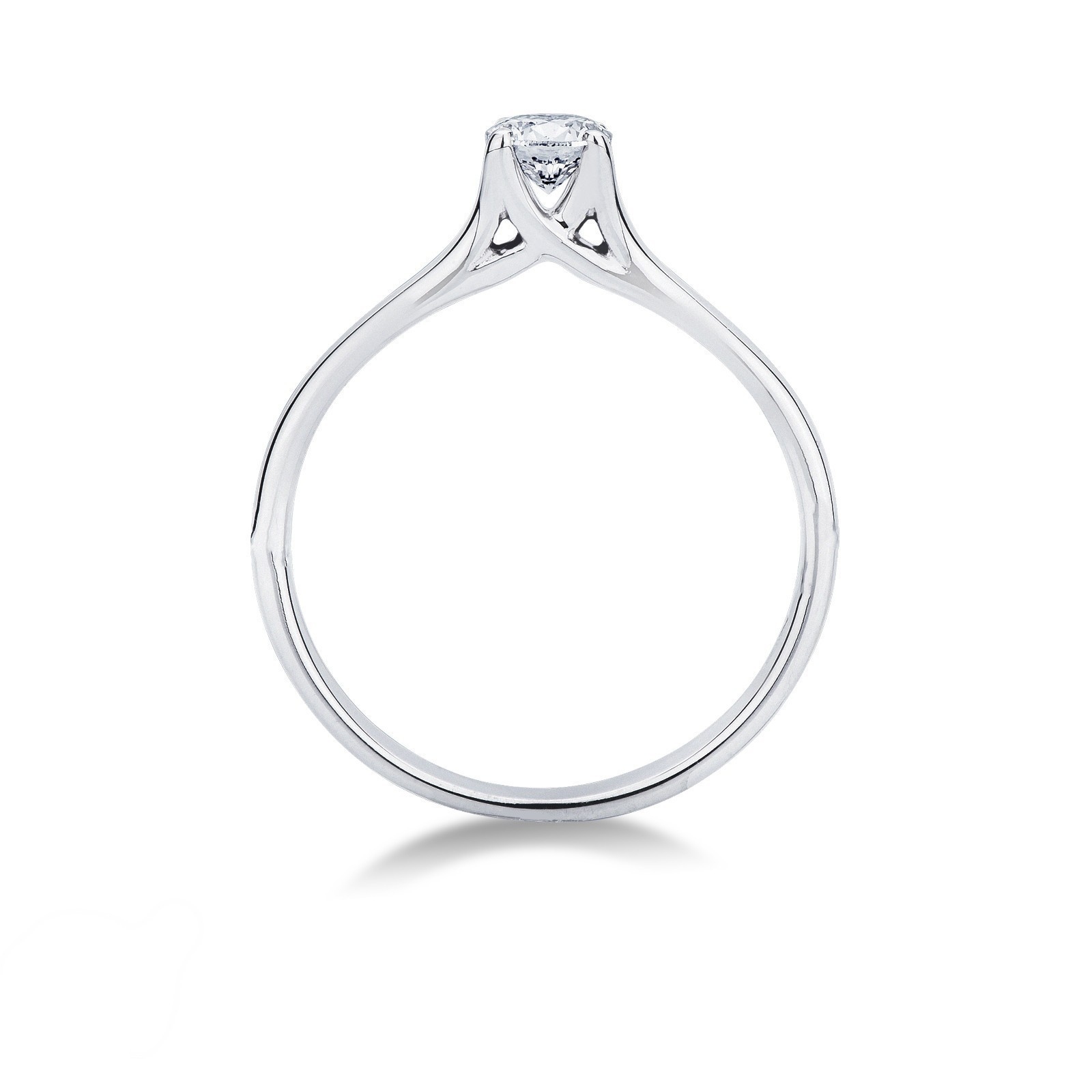 Bague solitaire au design linéaire avec quatre griffes qui maintiennent un diamant taille brillante de 0,30 ct. Élégance intemporelle en or blanc 18 carats, parfaite comme bague de fiançailles, bague en diamant ou cadeau raffiné. Le design minimaliste met en valeur la brillance et la pureté du diamant, offrant confort et sophistication dans chaque détail.