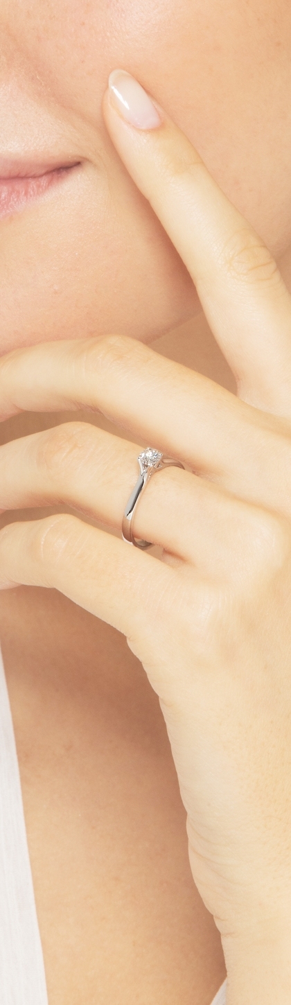 Bague solitaire 4 griffes en or blanc 18k avec diamant 0,30 ct