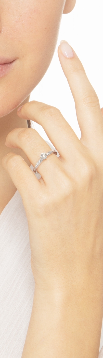 Bague solitaire avec diamant central sertie de diamants