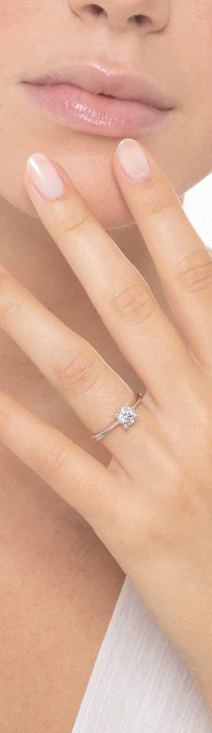 Bague solitaire diamant 0,70 ct or blanc 18k quatre griffes