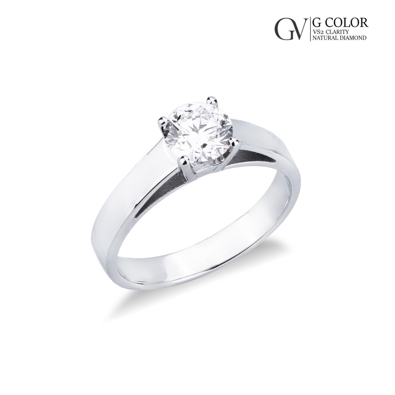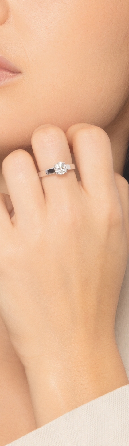 Bague solitaire en or blanc 18 carats avec diamant certifié IGI CT 0,90
