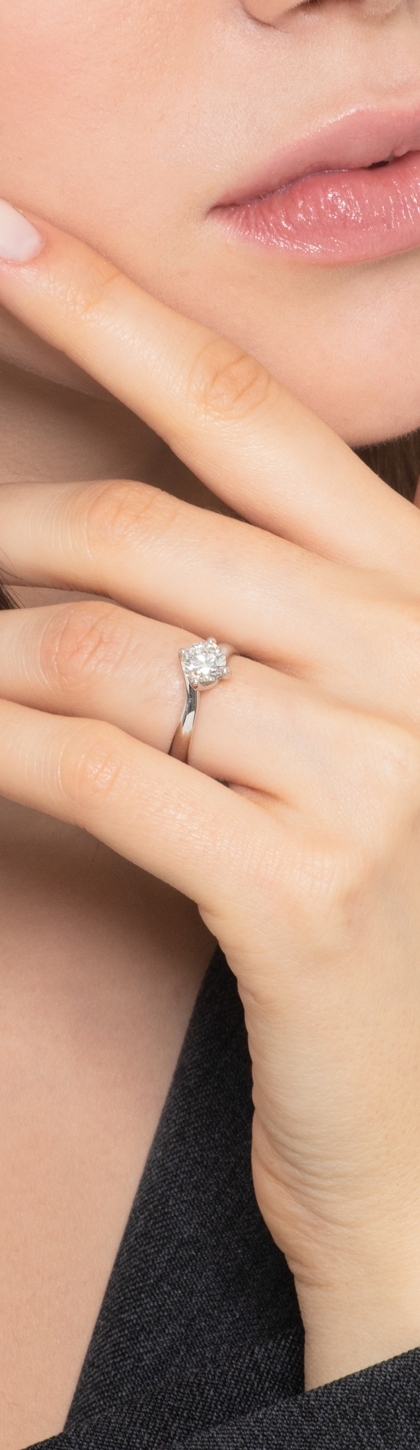 Bague solitaire en or blanc 18 carats avec diamant ct. 1.00