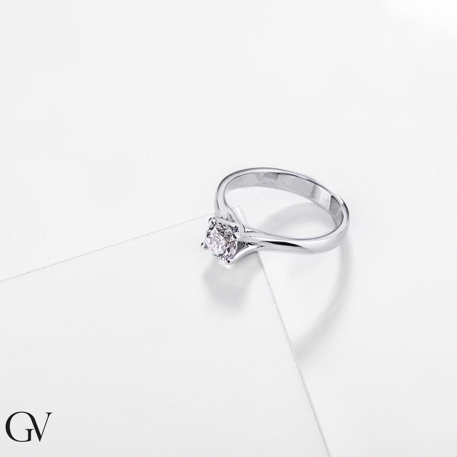Bague Solitaire en Or Blanc 18k avec Diamant 0,70 ct