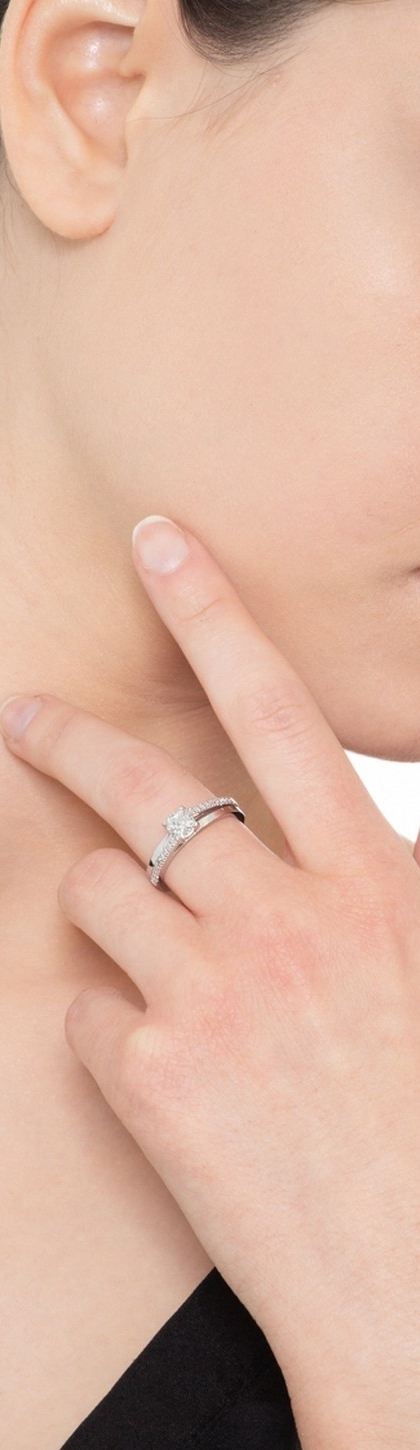 Bague solitaire en or blanc 18K avec diamant de 0,40 ct