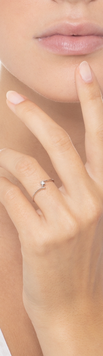 Bague Solitaire en Or Blanc 18k avec Diamant Taille Brillante 0.04 ct