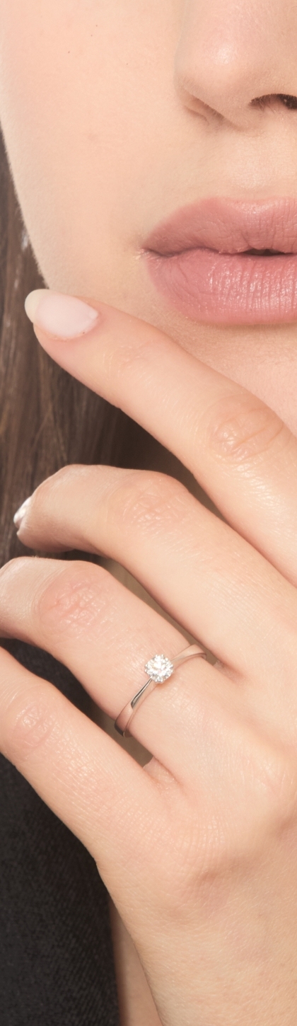 Bague solitaire en or blanc 18k avec huit griffes et diamant CT 0,30