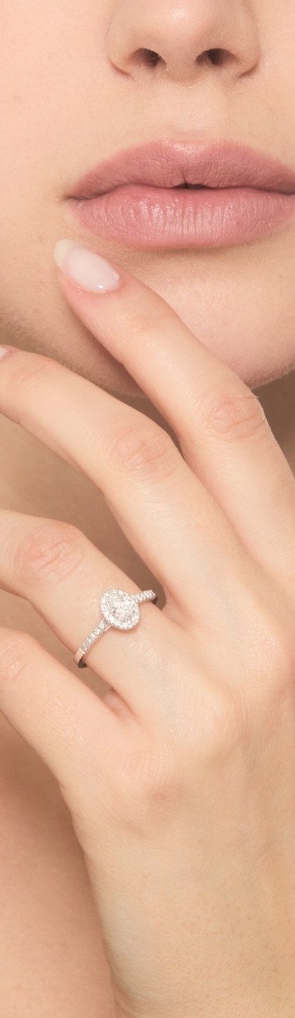 Bague solitaire en or blanc 18k diamant ovale certifié GIA ct 0.30