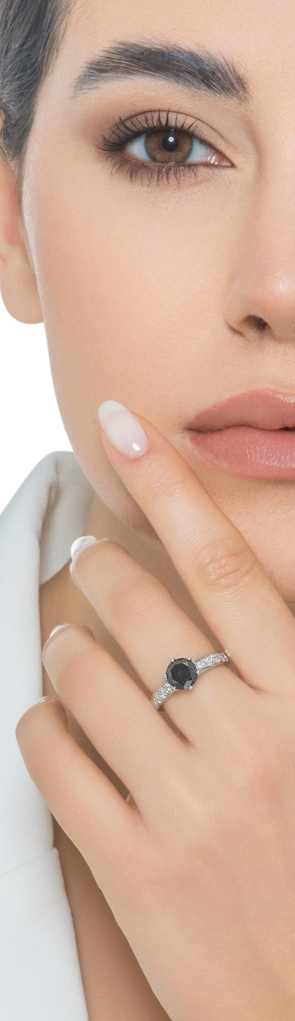 Bague solitaire en or blanc 18k et diamant noir