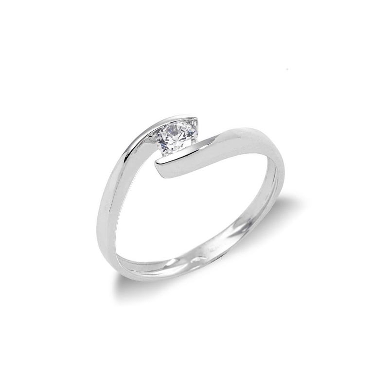 Bague solitaire en or blanc 18k sertie d’un zircon