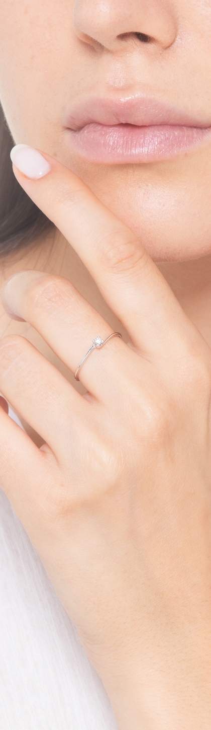 Bague solitaire en or blanc 750 avec diamant 0,04 ct