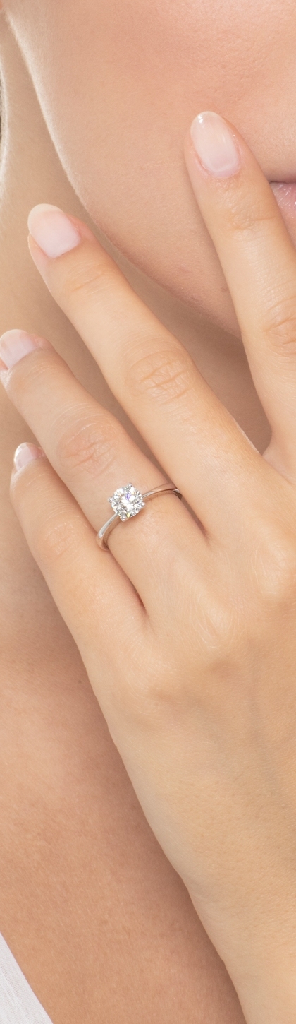 Bague solitaire linéaire en or blanc 18ct avec diamant 1 carat