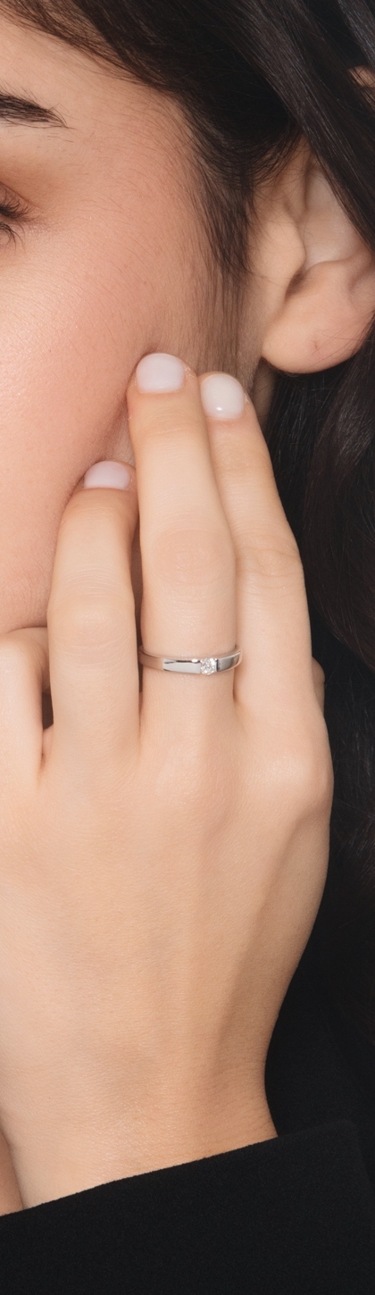 Bague solitaire moderne en or blanc 18k avec diamant serti clos