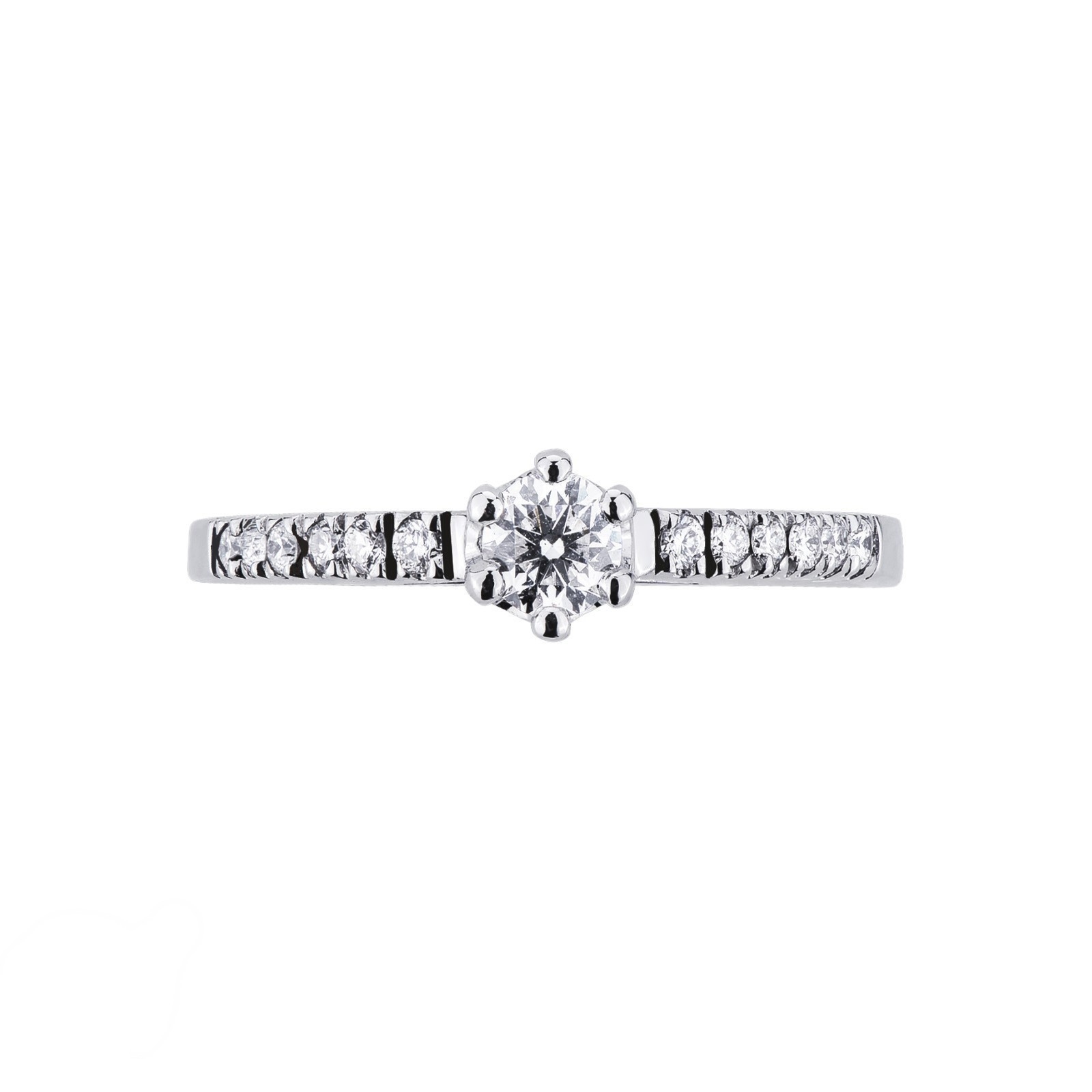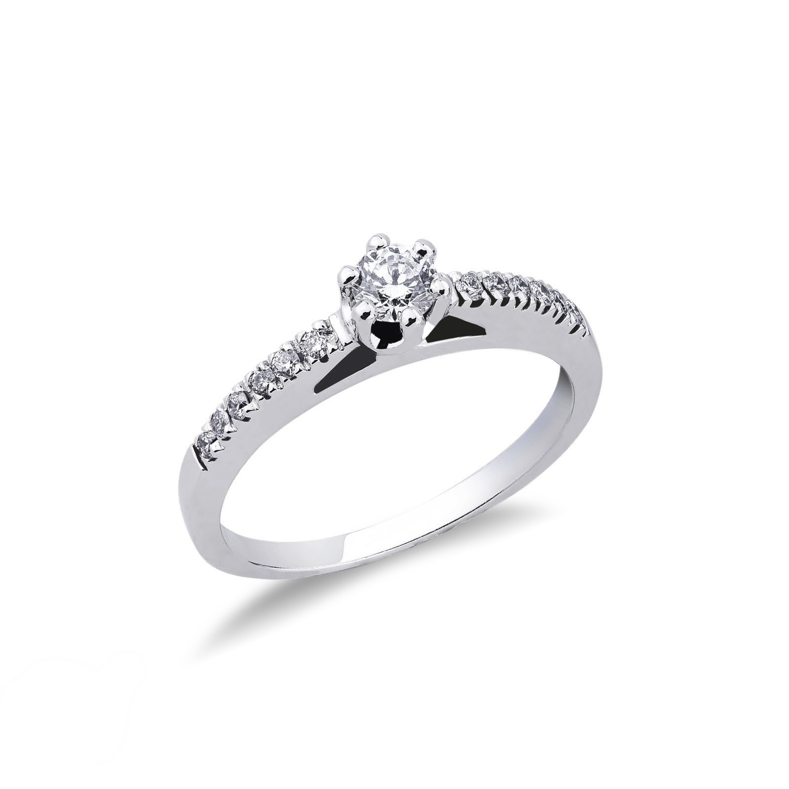 Bague solitaire Or Blanc 18k avec diamant central et diamants latéraux
