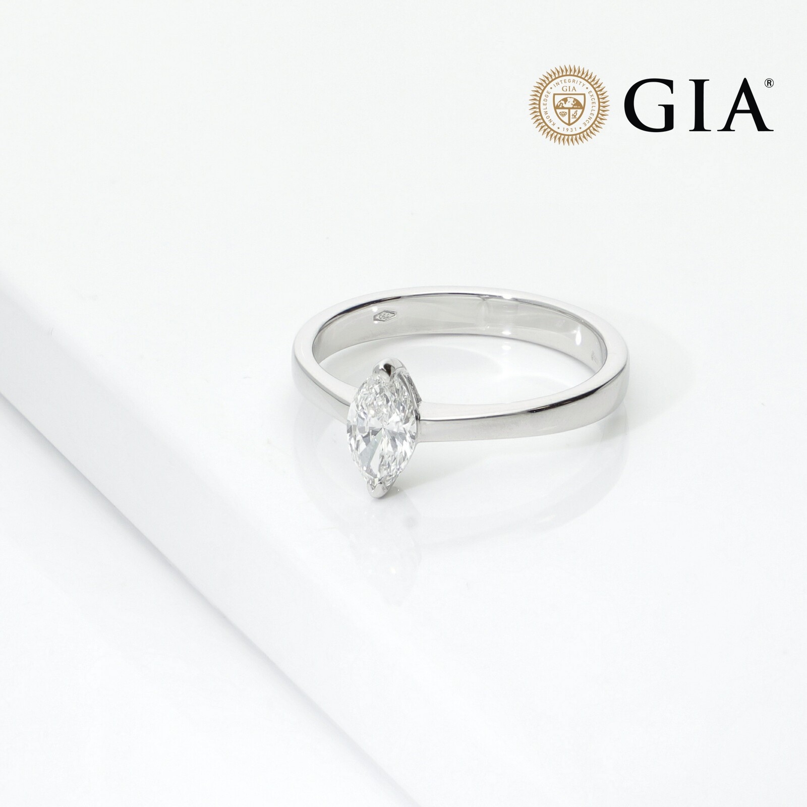 Bague solitaire Or Blanc 18k avec diamant marquise GIA 0.50 ct