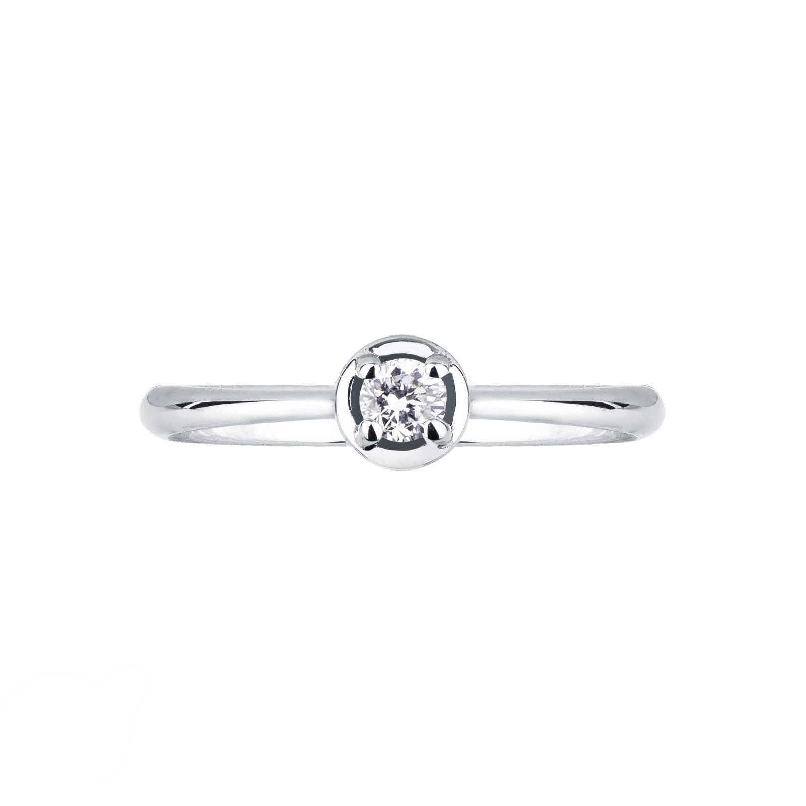 Bague solitaire or blanc 18k cœur diamant 0.10ct taille brillante