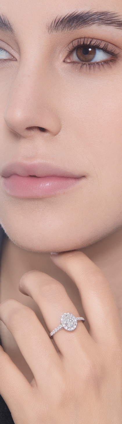 Bague solitaire or blanc 750 avec un diamant naturel central ovale GIA CT.1 F/VS