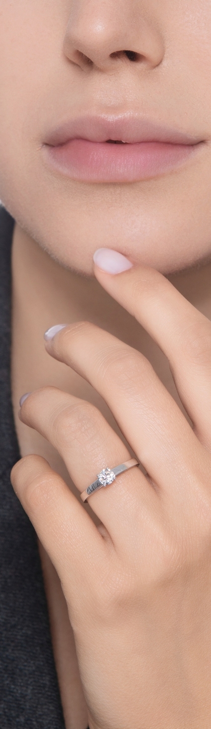 Bague solitaire quatre griffes en or blanc 18k avec diamant 0,40 ct