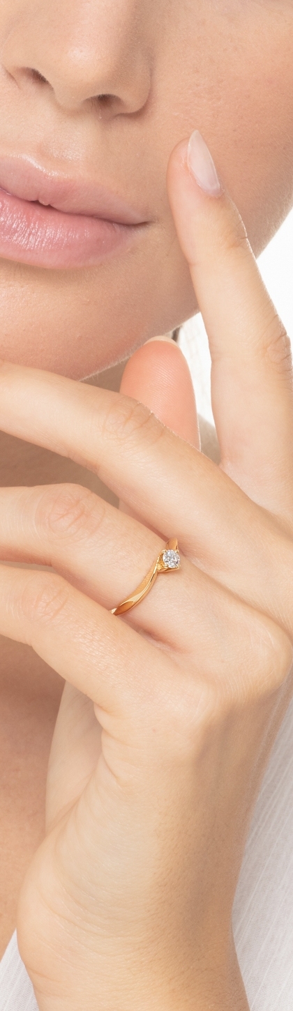 Solitaire à quatre griffes en or jaune 18 carats avec un diamant de 0,20 ct