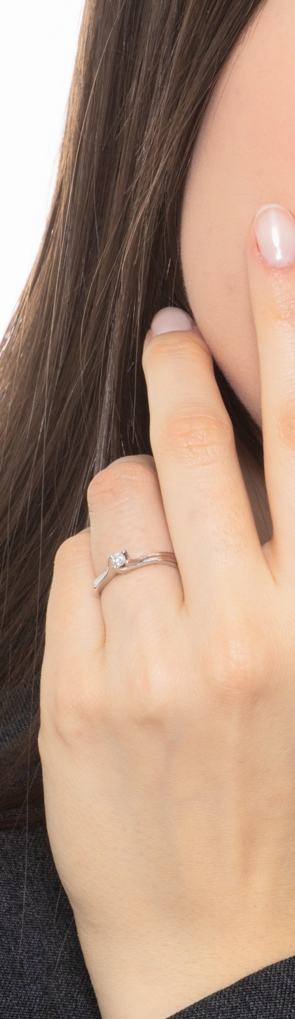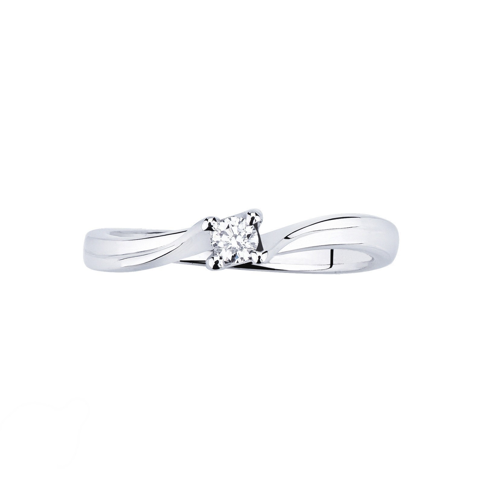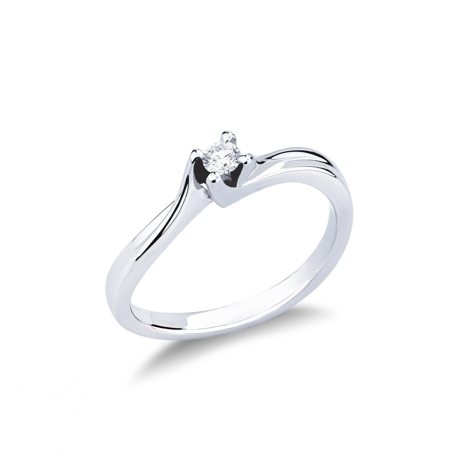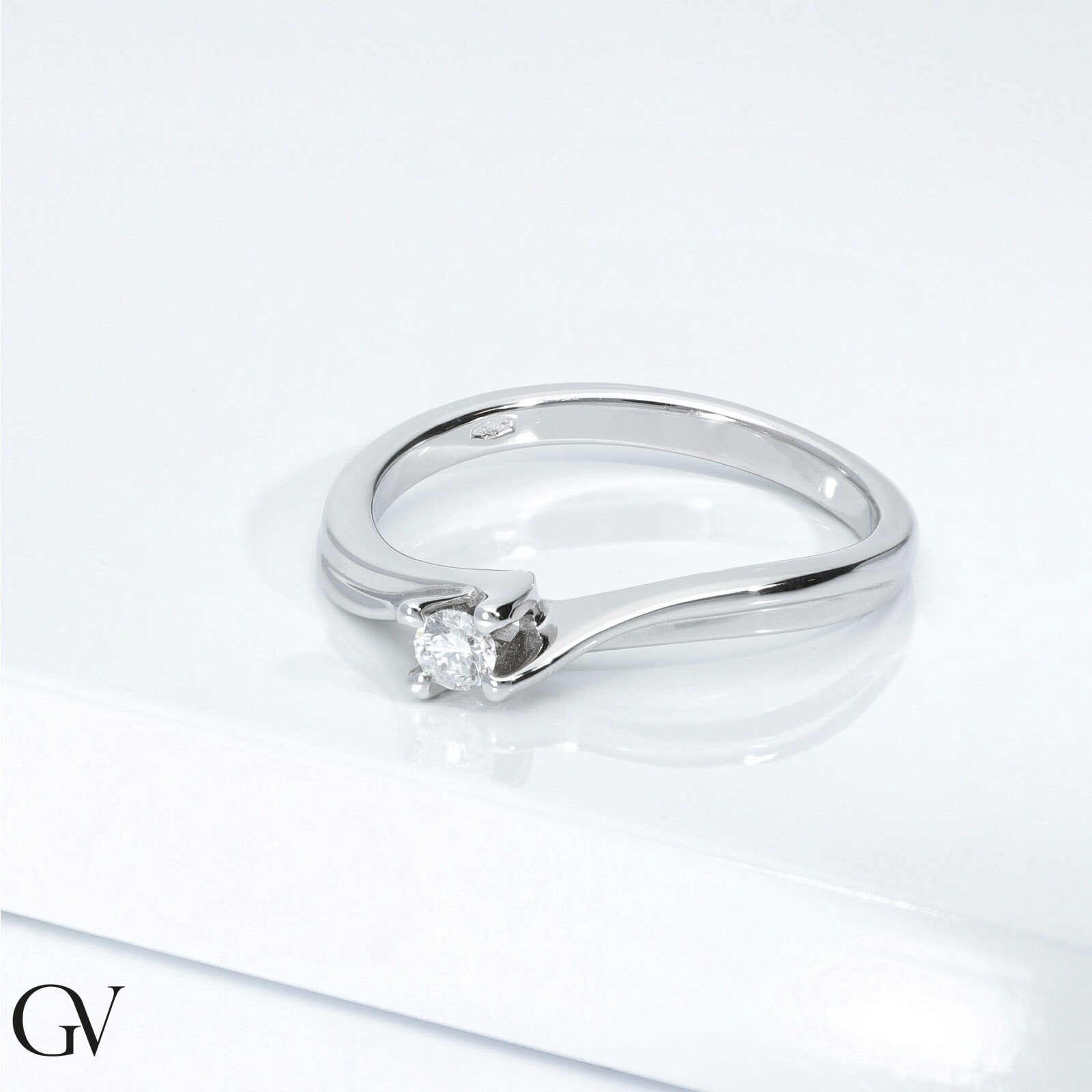 Solitaire bague en or blanc 18 ct avec diamant 0,10 ct