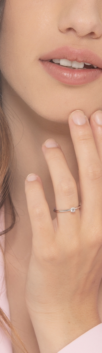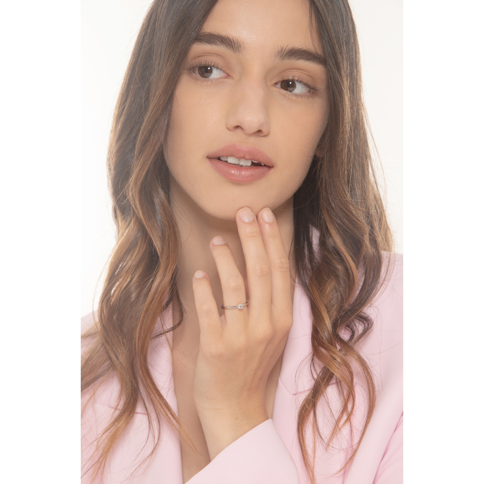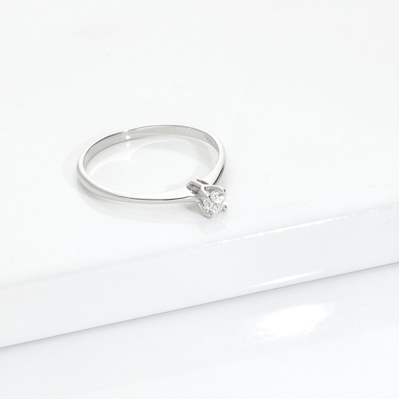 Solitaire Or Blanc 18K 4 Griffes et Diamant 0.15 ct