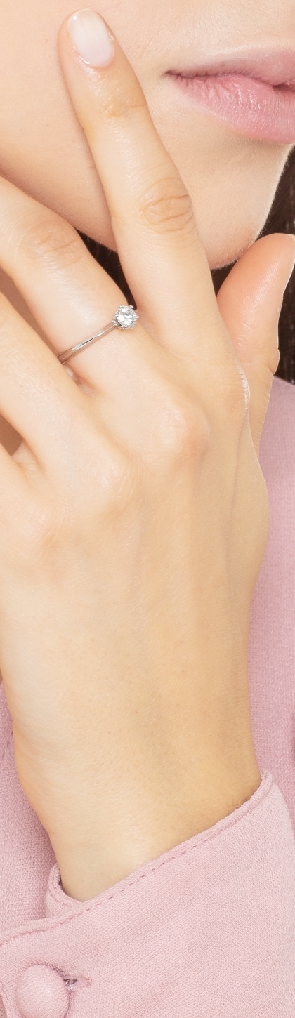Bague solitaire en or blanc 18 carats, couleur H, pureté VS, diamant 0.40 ct, 6 griffes.