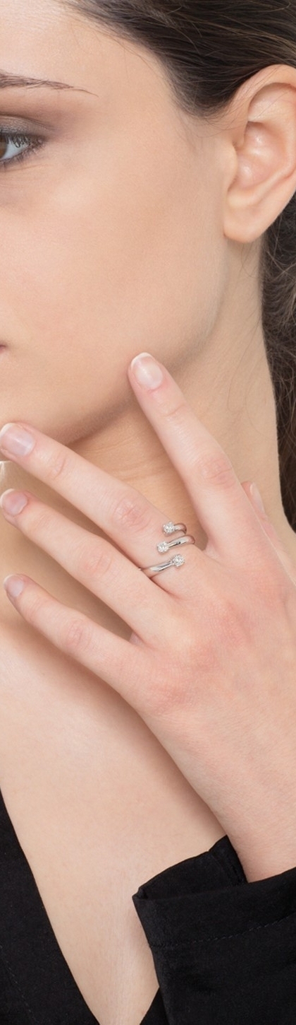 Bague à 3 branches ouvertes en or blanc 18k avec diamants 0.35 ct