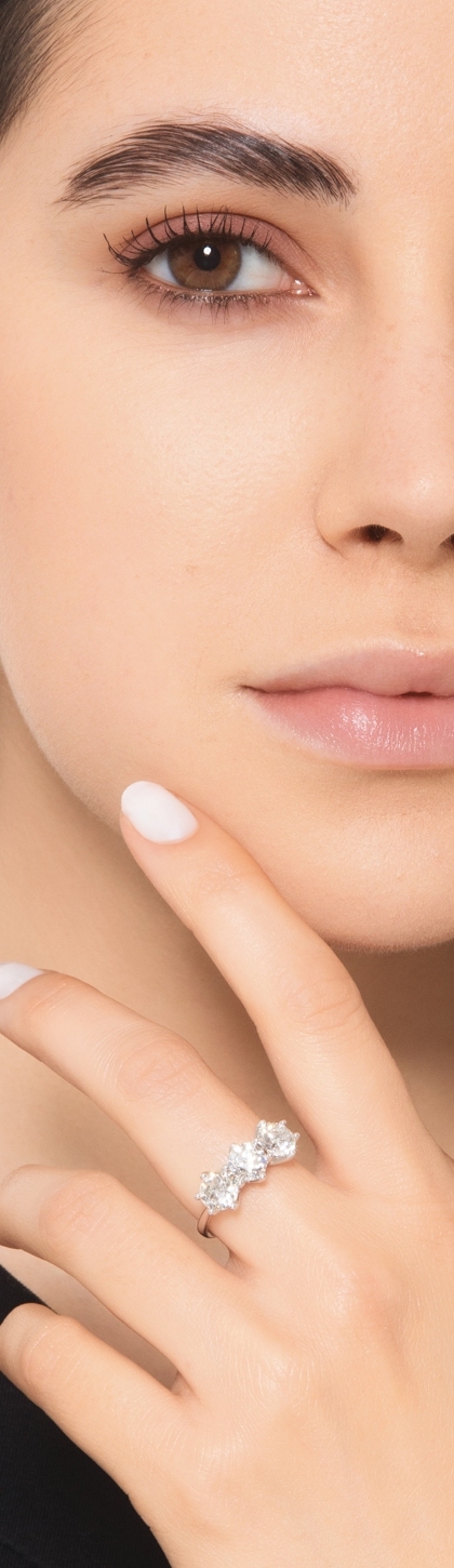 Bague en or blanc 18K avec diamants trilogy ct 3.00