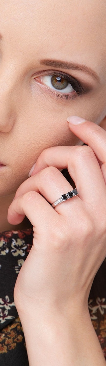 Bague trilogie avec diamants noirs et blancs or blanc 750