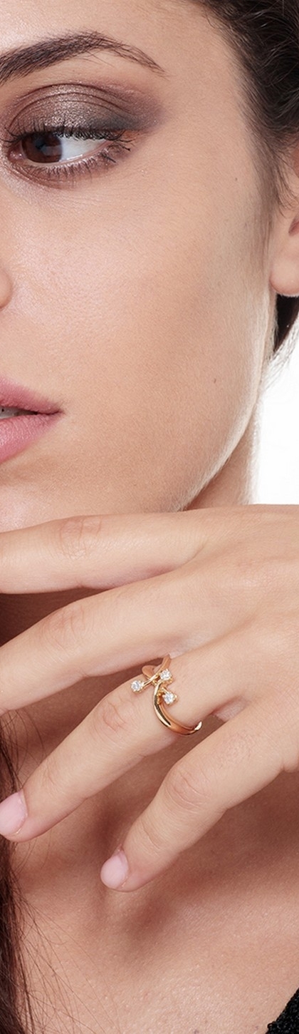 Bague trilogy en or jaune 18k avec design ondulé et diamants