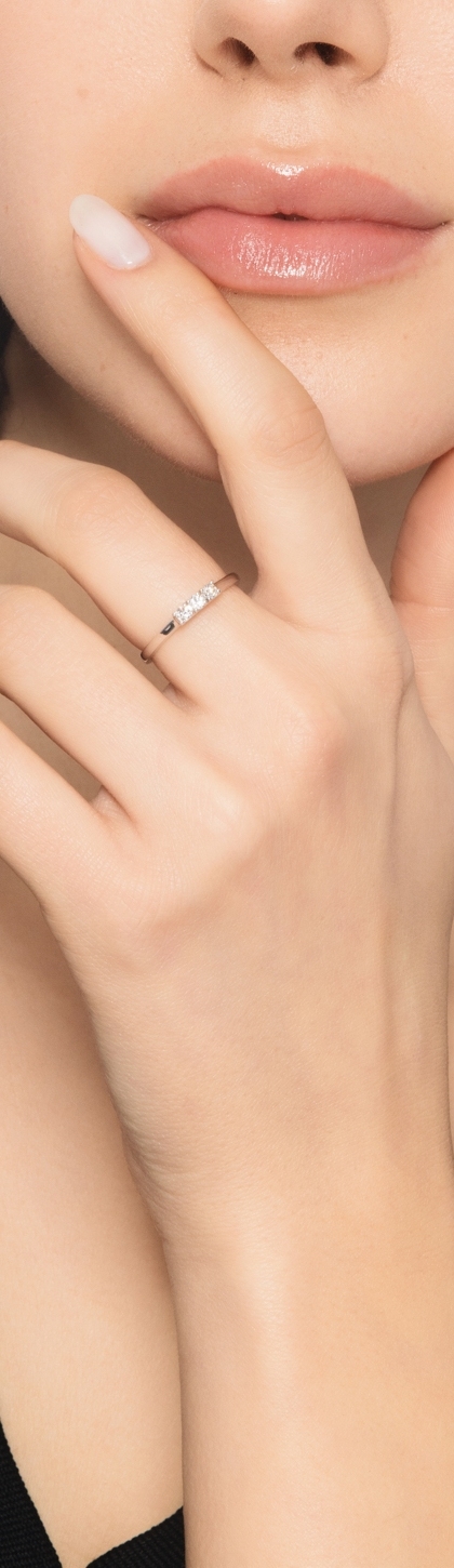 Bague trilogy linéaire en or blanc 18k avec diamants 0.15 ct