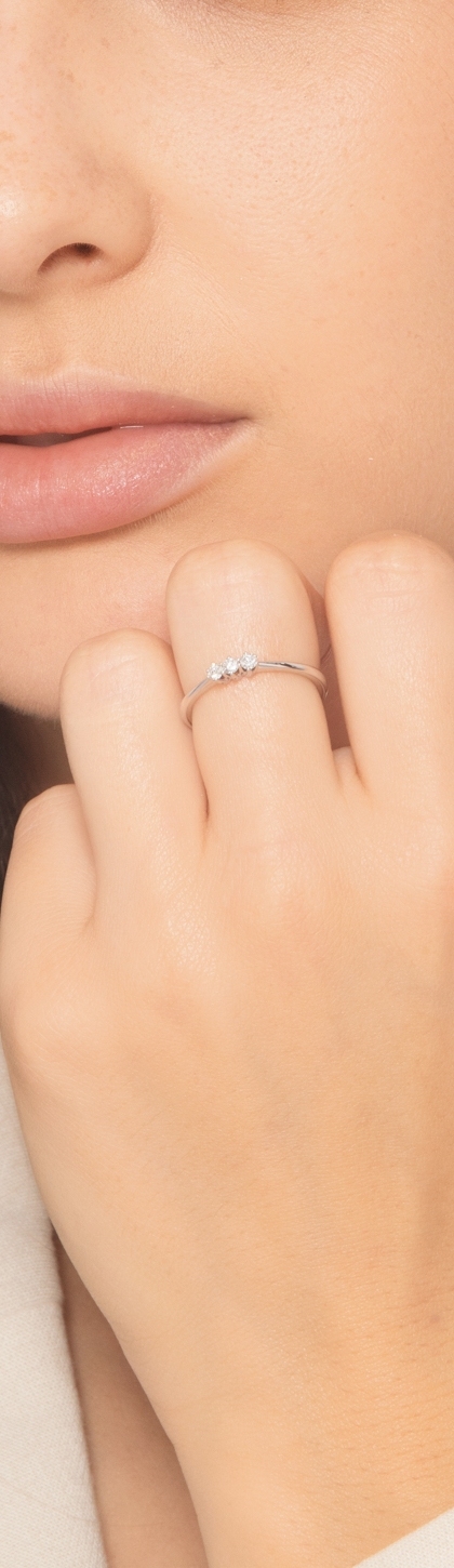 Bague trilogy lineaire en or blanc 18k trois diamants 0,15 ct