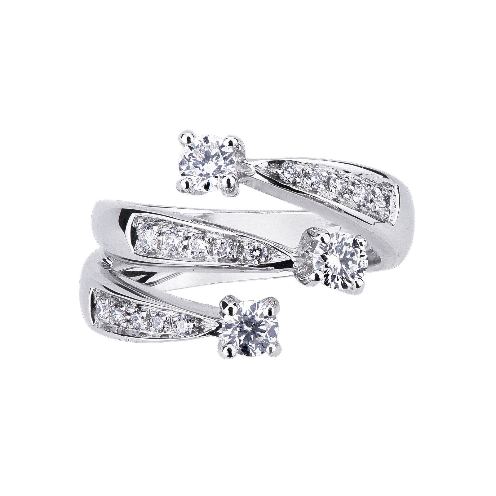 Bague trois rangs toi et moi en or blanc 750 avec diamants