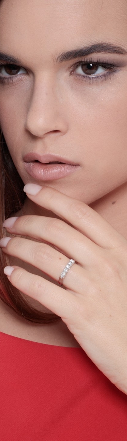 Alliance demi-tour 5 diamants 0.45 ct en or blanc 18k