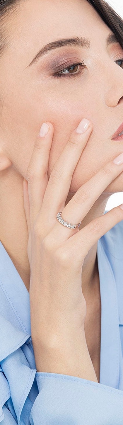 Bague à 7 diamants, anneau en or blanc 18k, diamants taille brillant, H/VS.