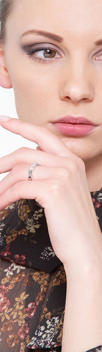 Alliance demi tour en or blanc et 5 diamants en or blanc 18k