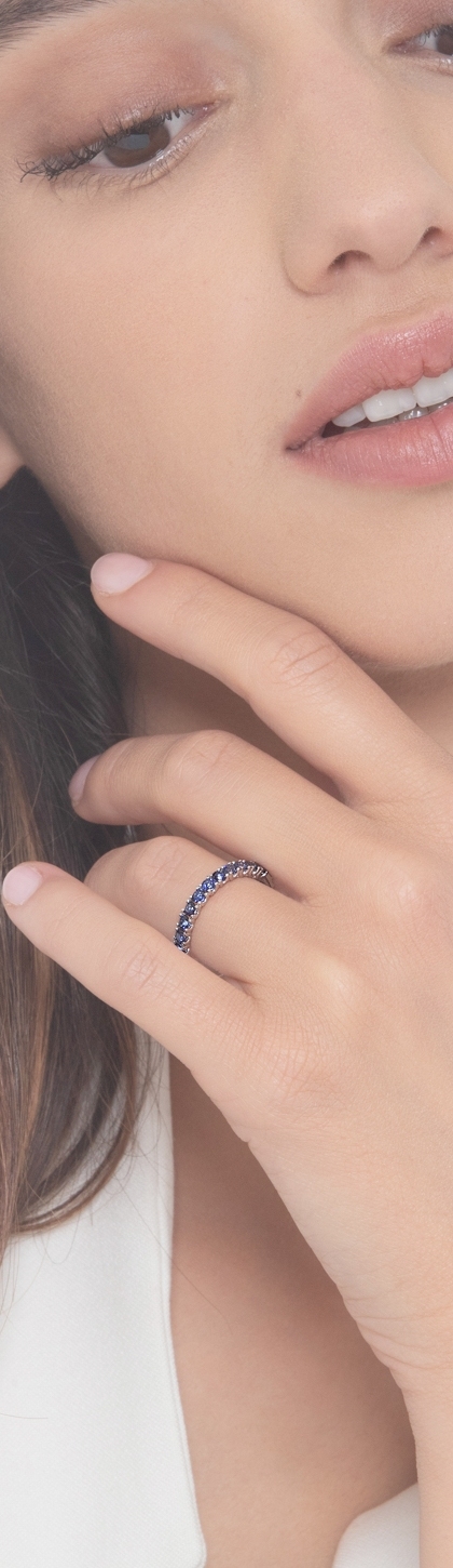 Bague alliance en or blanc 18k avec onze saphirs bleus ronds
