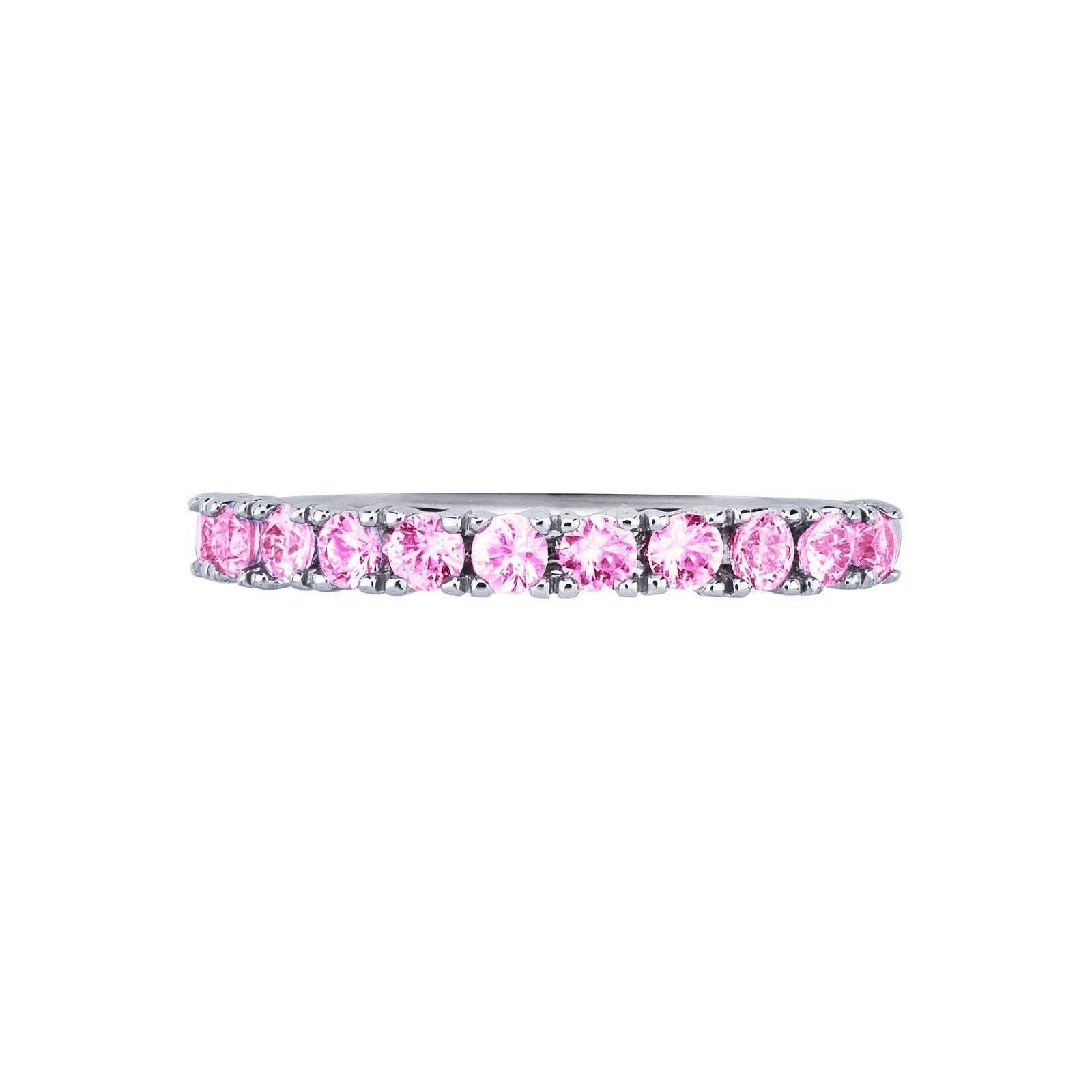 Bague Alliance Or Blanc 18k avec Saphirs Roses