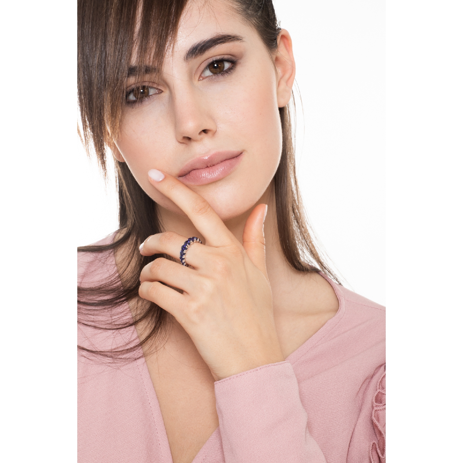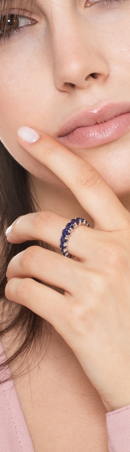 Bague demi-alliance en or blanc 18k avec saphirs bleus