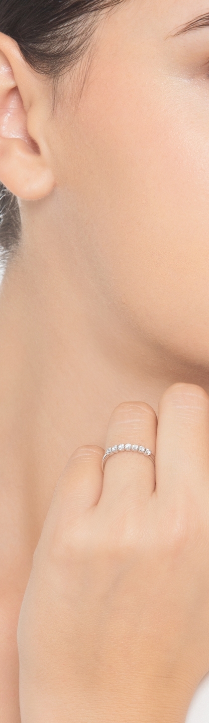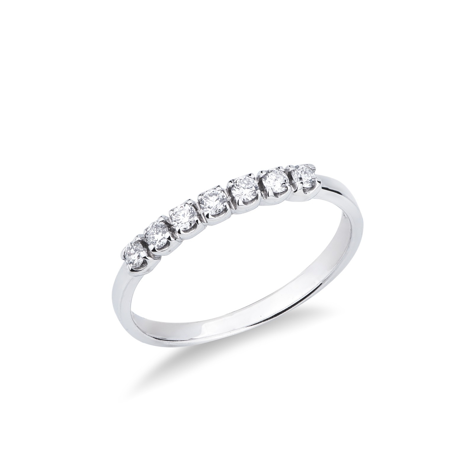 Bague demi-alliance en or blanc 18k avec sept diamants