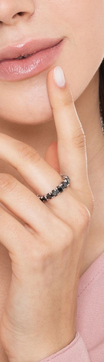 Bague demi-alliance en or blanc 18k et diamants noirs