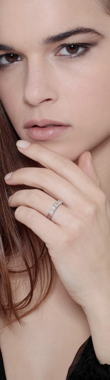 Bague demi tour à 5 diamants 0.90 ct en or blanc 18k
