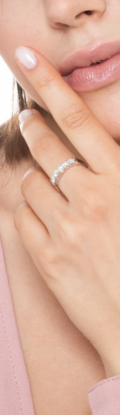 Bague Veretta à 5 pierres en Or Blanc 18k sertie de diamants taille brillant, couleur H, pureté VS.