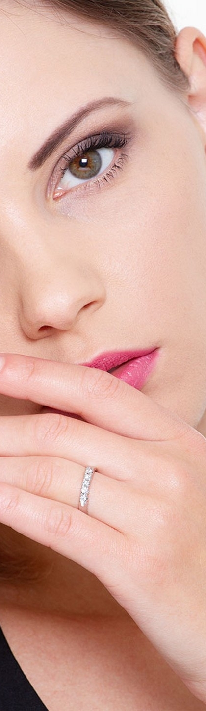 Demi-alliance à 5 pierres 0.20 ct en or blanc 18k