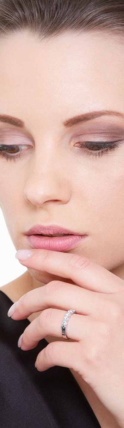 Bague à 5 diamants, en or blanc 18k, ornée de brillants de couleur H, pureté VS.