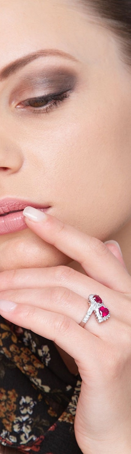 Bague contrarié en or blanc avec rubis cœur et diamants