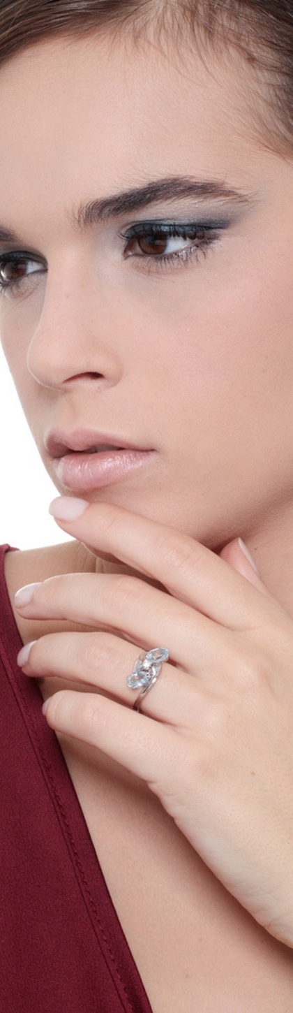 Bague en or blanc 18k aquamarine en taille poire et d'un diamant central