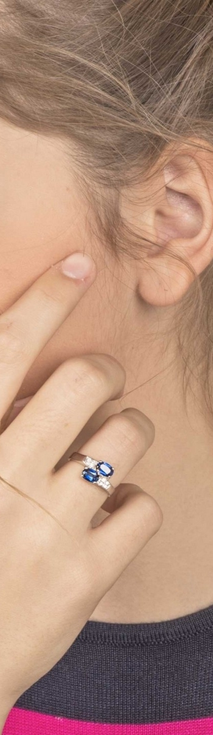 Bague Femme Duo en Or Blanc 18k avec Saphir Bleu et Diamants