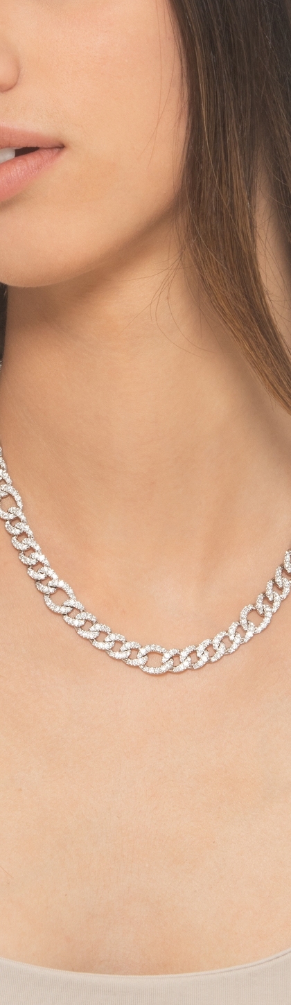 Collier en maille gourmette en or blanc 18 carats avec des diamants