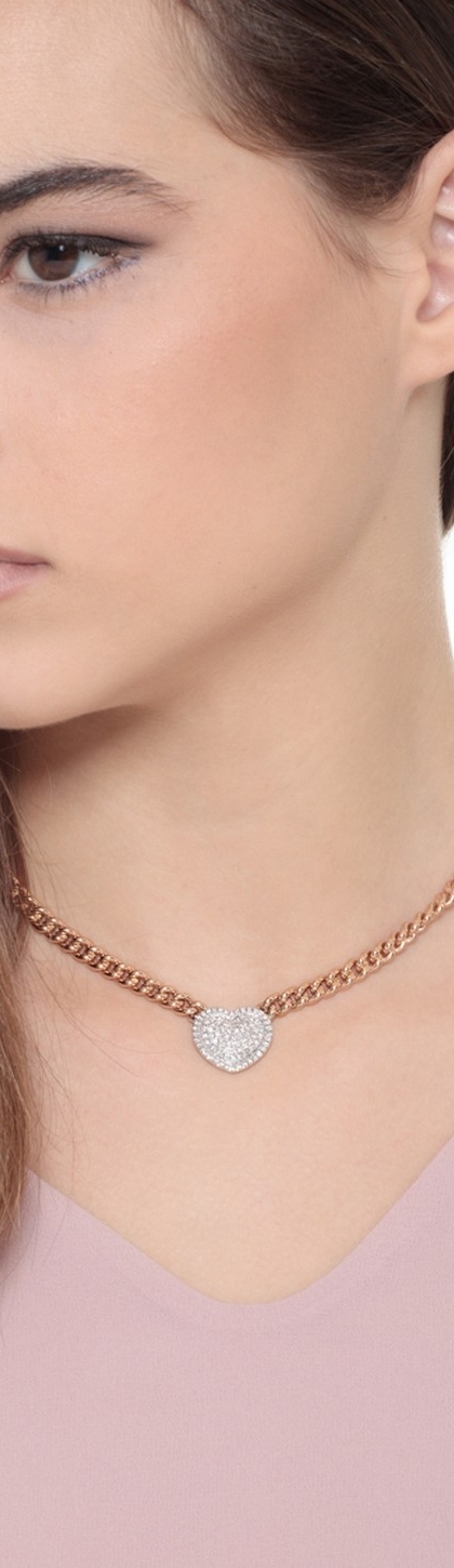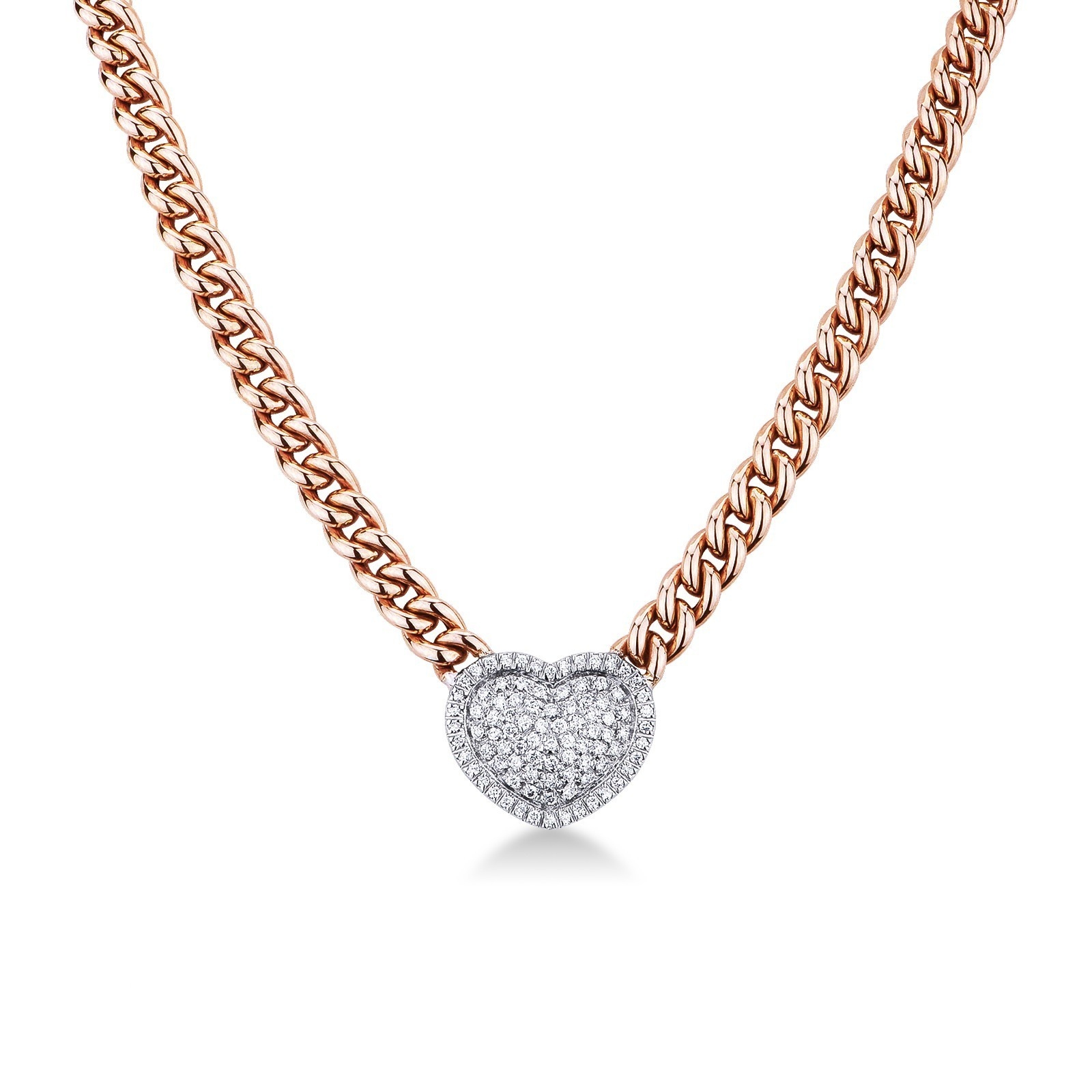 Collier gourmette or rose 750 avec cœur pavé de diamants